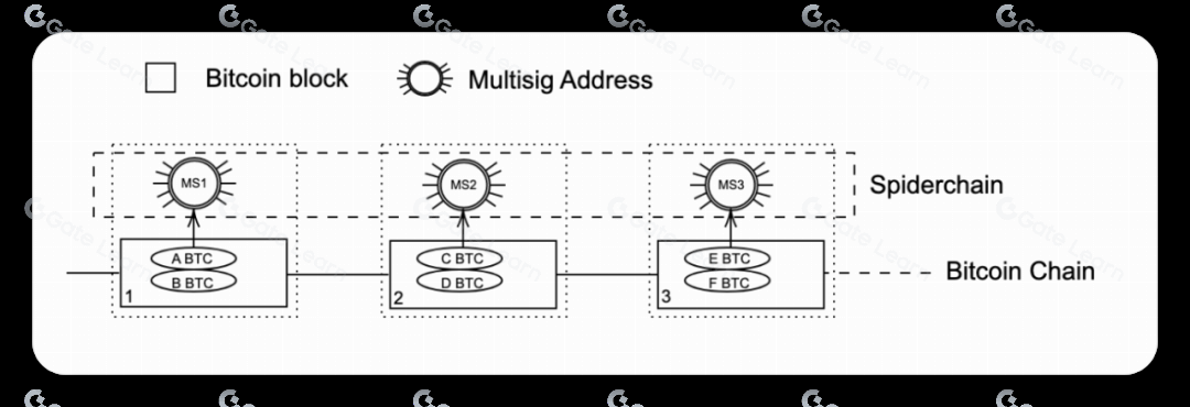 Botanix引入了Spiderchain,它是二层区块链的一种新的机制。Spiderchain是一系列连续的多重签名钱包,由Botanix Orchestrators(协调者)之间创建。通过将这些多重签名钱包分散管理,保障了安全性。这一连续的多重签名链创建了一个网络,用于保护Botanix链上的比特币资产。这个“移动”的多重签名链可以看作是一种抵押,它被锁定在这个去中心化的多重签名网络中,因此得名Spiderchain。