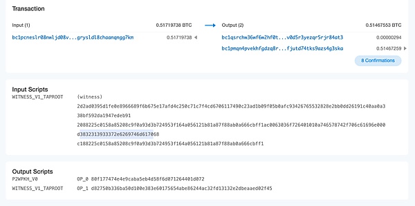 我们从链上找一笔交易来详细说明ordinals的编码原理: