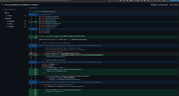 Luke已经在Bitcoin Knots客户端中推出了对策略过滤器(policy)的修改,并且计划在Bitcoin Core客户端中引入类似的更改。在这次修改中,他引入了一个新的参数,名为g_script_size_policy_limit,用于在多个不同的位置限制脚本的大小。这一改动意味着在处理交易时,脚本大小将受到额外的限制,影响着交易的接受和处理方式。