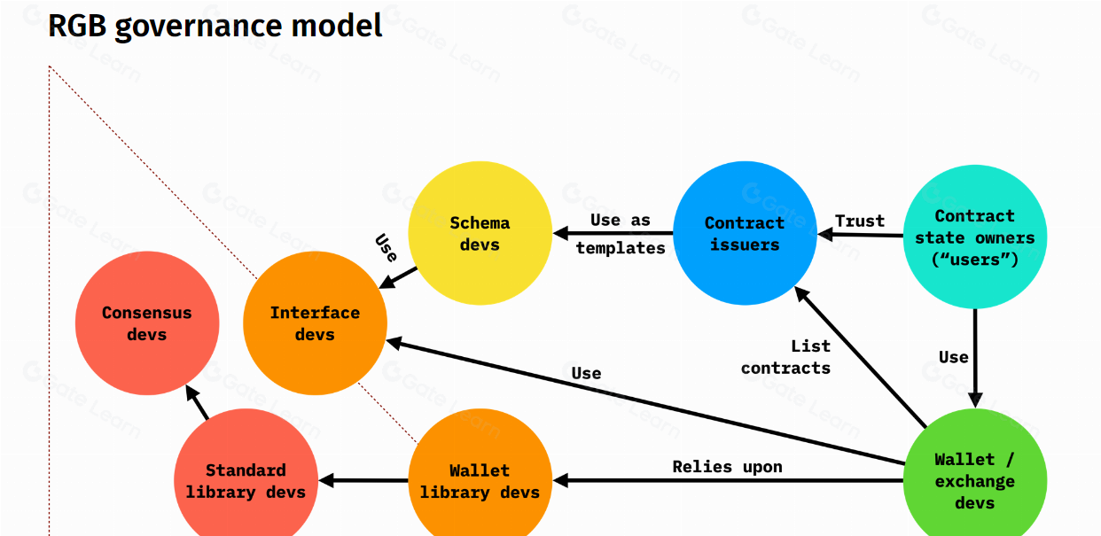 RGB 协议采用 Peter Todd 的“客户端验证”技术设计,可以在不过多负担比特币区块链的情况下验证合约状态和交易。