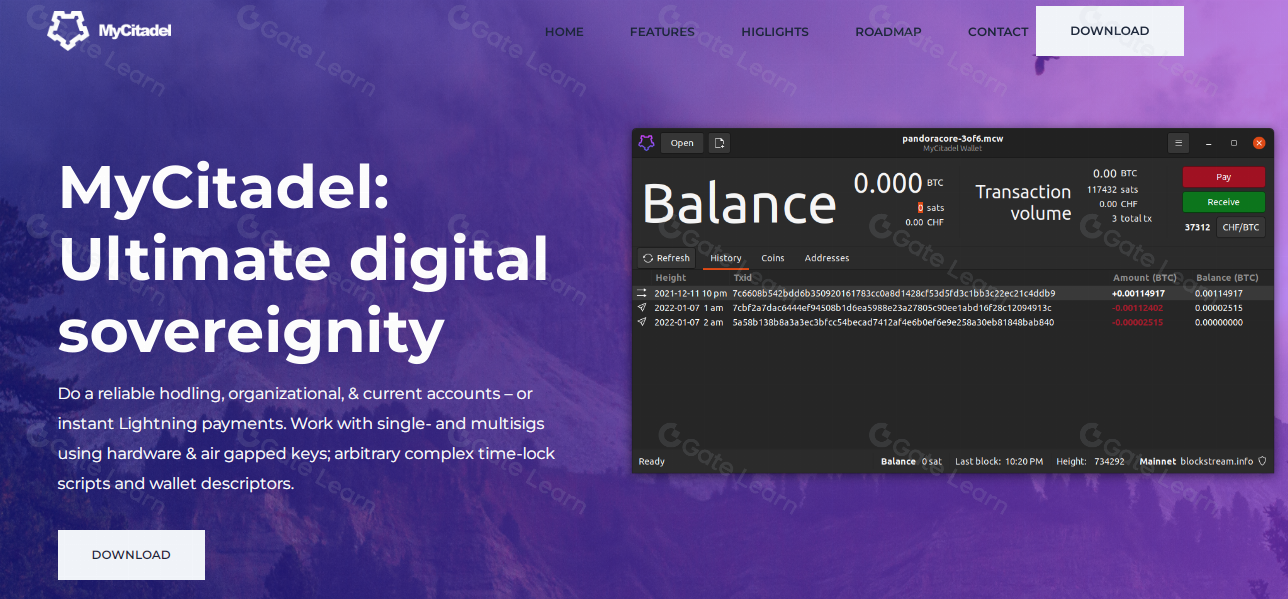 MyCitadel 是第一个支持 RGB 协议功能的图形用户界面钱包(GUI 钱包)。它由 RGB 的开发人员创建,是一个跨平台钱包,允许用户在其首选设备上使用该平台。