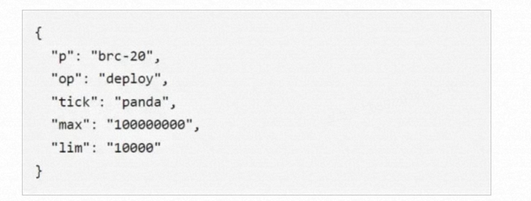 BRC-20是基于Ordinals协议的一组铭文。它以一定的数据规范格式,规定了代币名称、代币总量、每张铭文铸造的代币数量。下图示例中,Panda就是代币名字,最大代币数量为1亿,每个铭文mint的最大代币数量为1万。这个BRC-20就相当于支票一样,你可以在限额内填任何金额。BRC-20现在介于代币和NFT的之间的一种形态,或者说兼具两者的特征,非常有意思。