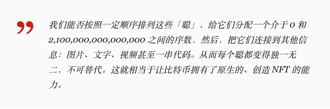 Runes 的提出者 Casey 在一开始并没有要做同质化代币协议的 idea ,早在 2022 年 12 月时, Casey 就发布了 Ordinals 协议,意图是将 NFT 数据永久上链 Bitcoin,简单说就是将 NFT 元数据像铭文一样,记录在比特币交易的见证数据 witness 中(witness 主要包含数字签名信息),这样就能够将任意形式的内容(如文本、图像等)铭刻在指定的聪上。
