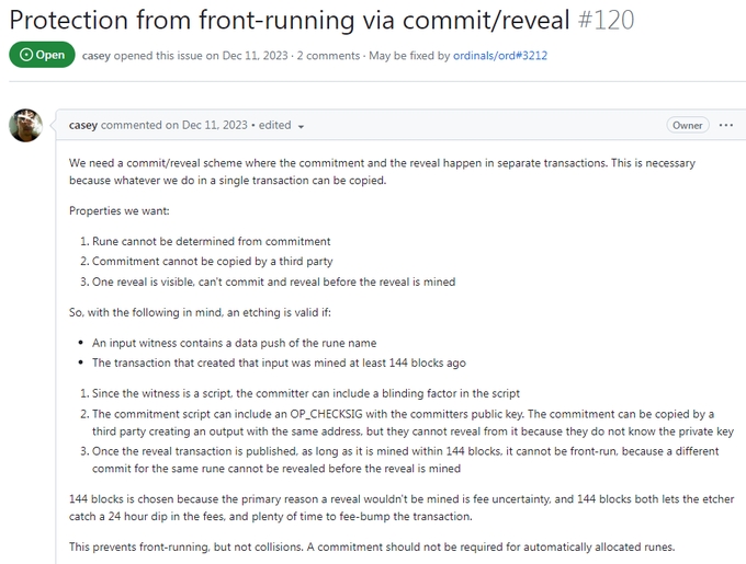解决名称抢跑问题:采用 Commit-Reveal 机制来防止矿工提前得知 Runes ++
